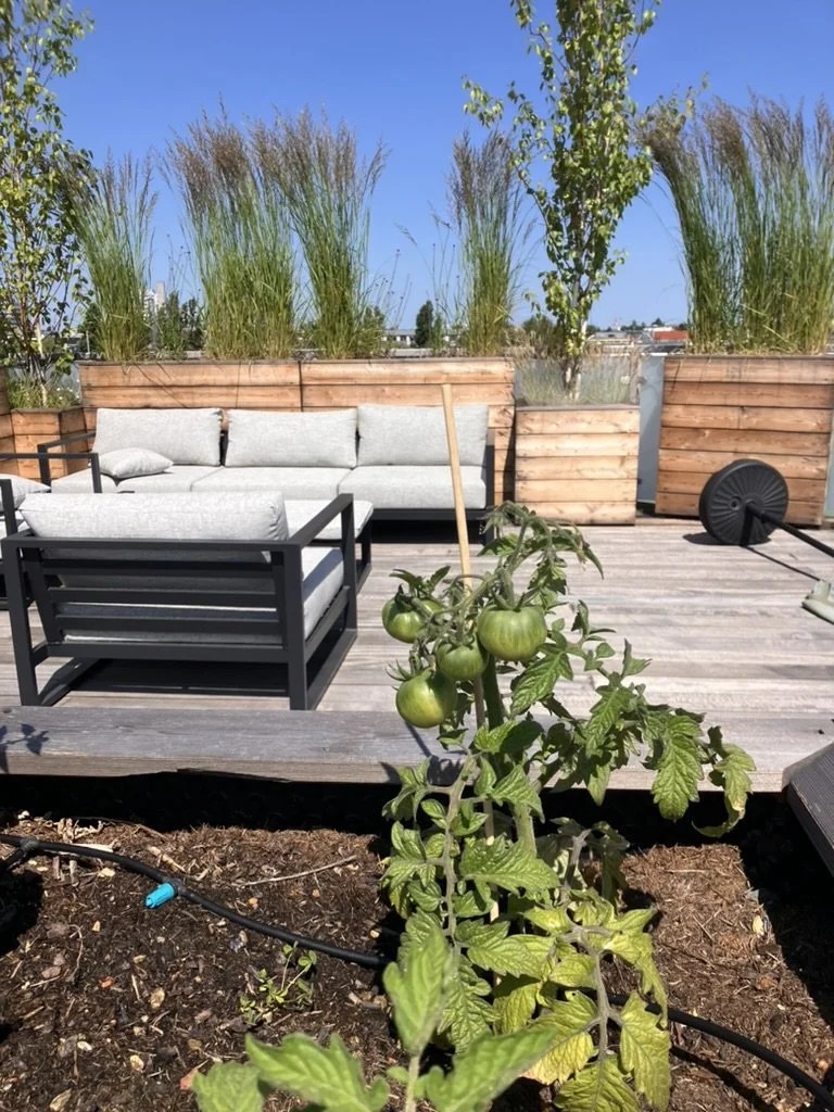 Dachterrasse mit Hochbeeten